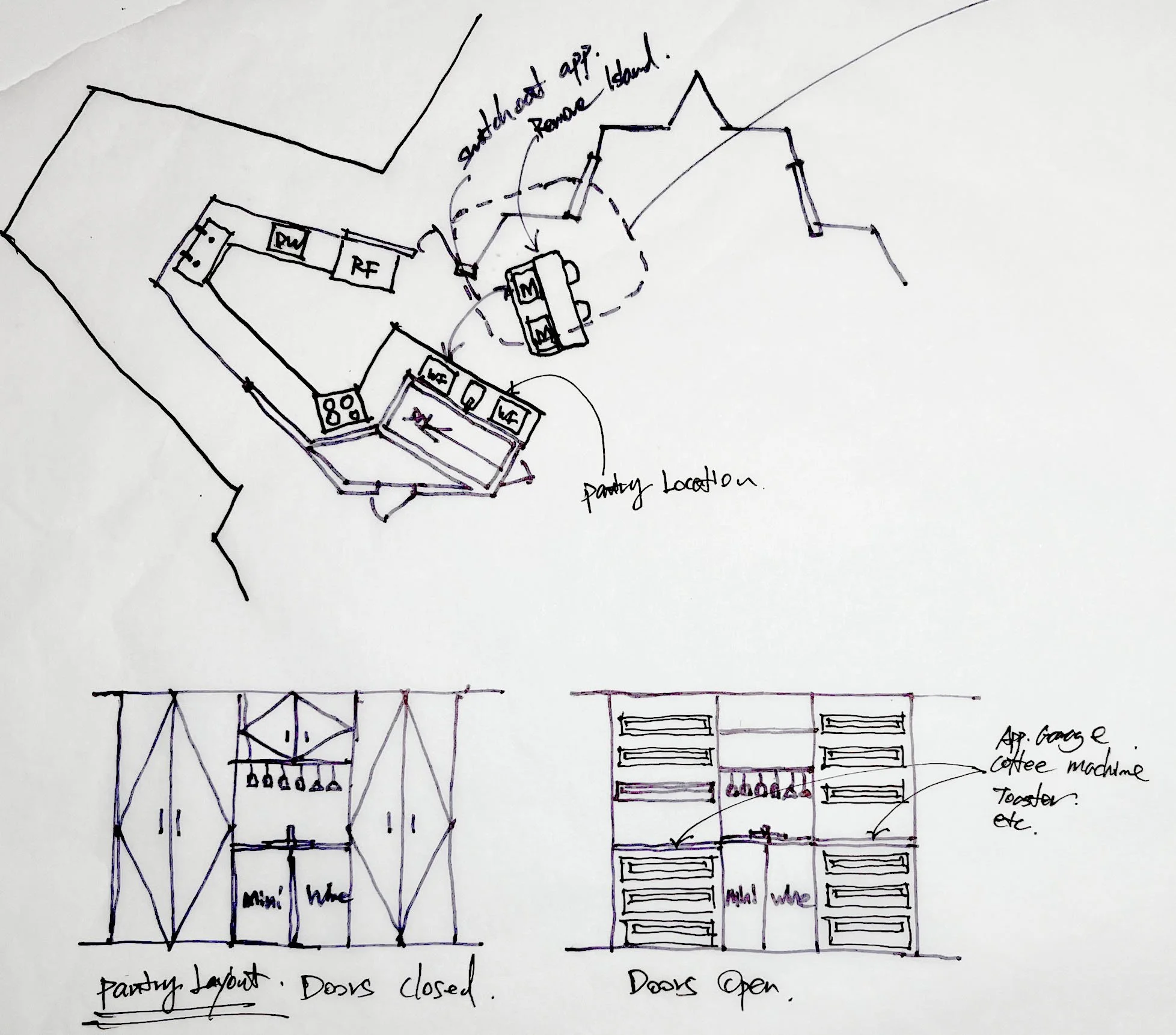 Now, the new design breathes fresh life into the space, creating a kitchen that not only brightens the room but also pays homage to its roots. With an emphasis on maximizing storage without sacrificing the breathtaking views or overall functionality, this kitchen flows seamlessly from one station to the next, perfectly suited for its triangular layout