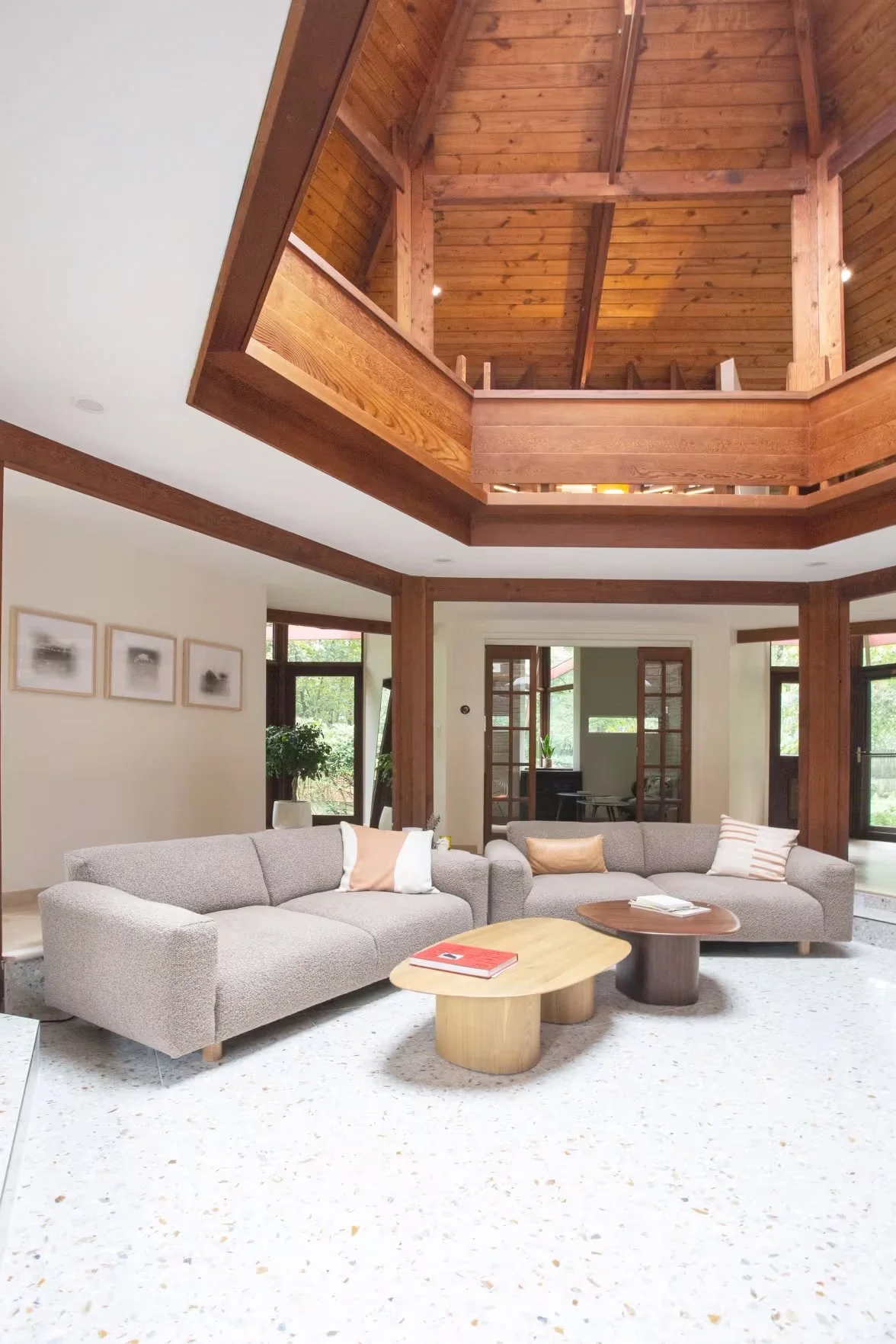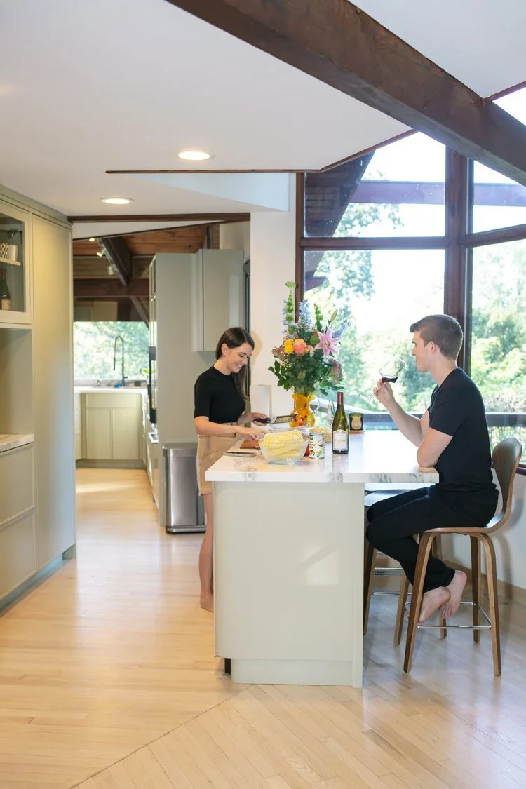 As they embark on their renovation journey, the couple's aim is to infuse contemporary elements into the home's interior while honoring its original charm. Their thoughtful approach focuses on updating the space to suit the needs of their growing family, all without altering the beloved layout. Carefully chosen new materials complement the existing color palette, along with stylish new furniture and lighting, ensuring that the essence of this architectural gem remains intact while welcoming a fresh, modern touch.